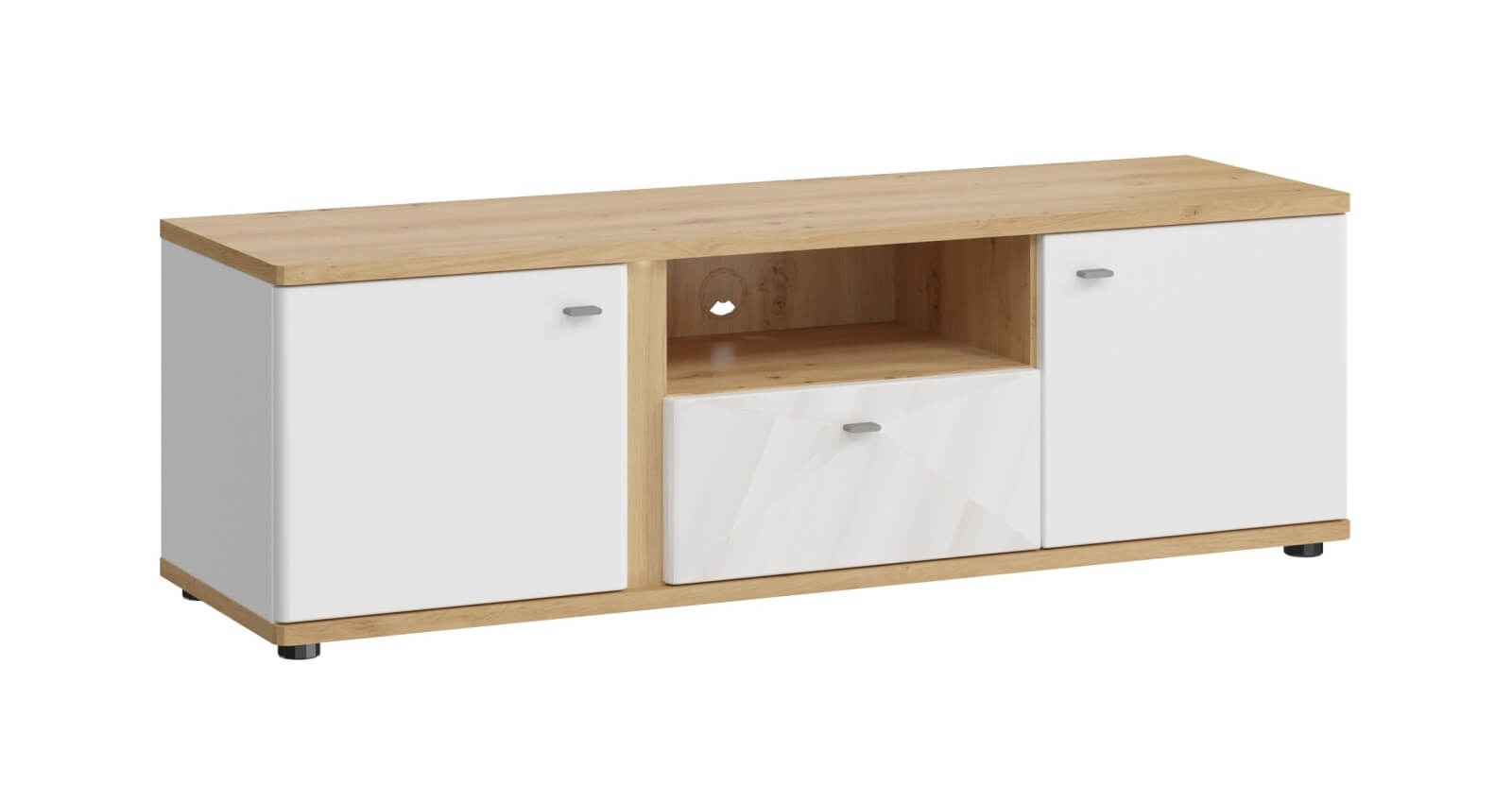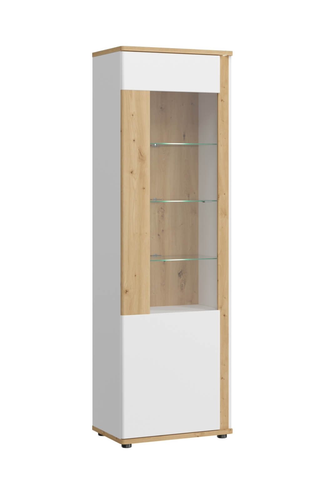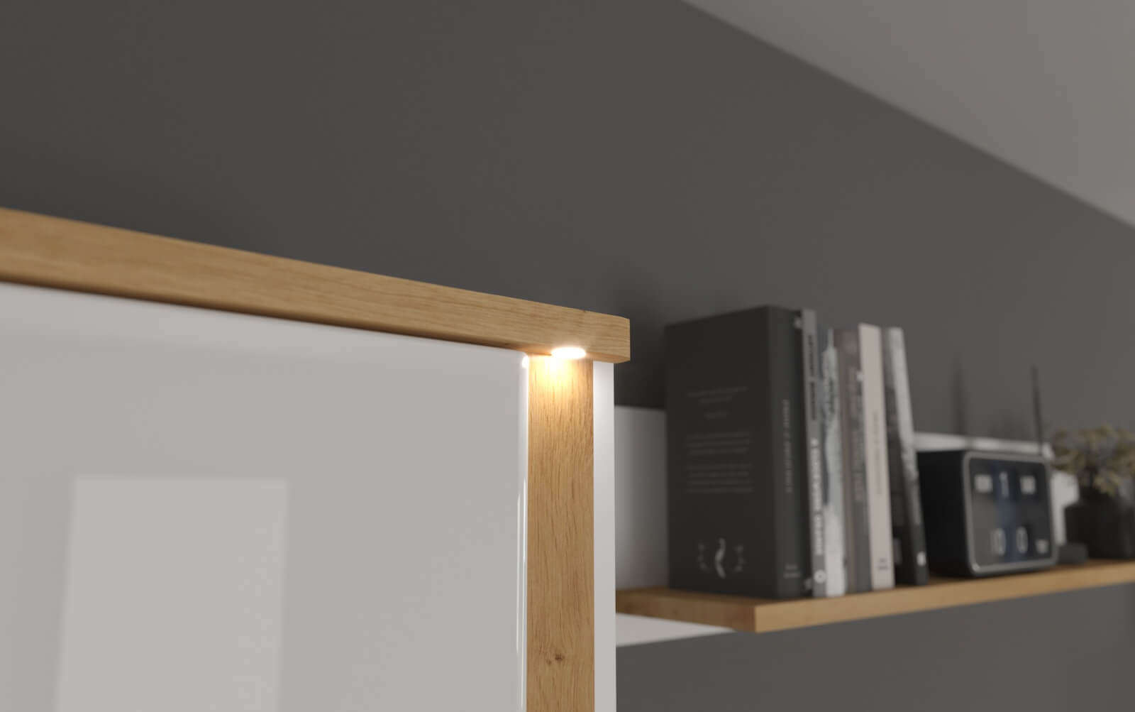 Wyjątkowe meble z kolekcji AVILA to wysokiej klasy przedmioty, cechujące się śmiałą formą i niespotykanym designem. Zestaw znakomicie uzupełni aranżację niejednej jadalni oraz salonu, a do tego prezentują się gustownie, nowocześnie a zarazem szykownie. Z pewnością mebel idealnie dopasuje się do każdego wnętrza, gdzie zaprezentuje się stylowo i modnie. Program pokojowy AVILA składa się z 7 nowoczesnych brył w kolorze BIAŁYM oraz drewnianym dekorem w kolorze DĄB ARTISAN. Meble w standardzie posiadają oświetlenie wieńców górnych. Fronty wykonane są z płyty MDF w białym połysku o grubości # 19 mm. Zastosowano zawiasy oraz prowadnice szuflad z cichym domykiem.